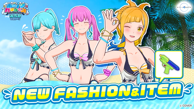 ホロナツパラダイス後夜祭を楽しむための水着やブレスレット、サンダルなどのアバターアイテムが追加予定です。