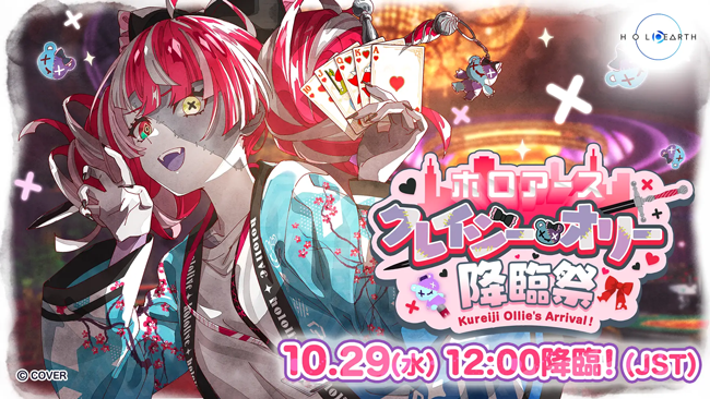 2025年10月29日(水)に、ホロライブプロダクション所属「クレイジー・オリー」が、アバターではなく本人の姿でホロアースに登場する「ホロアース クレイジー・オリー降臨祭」の開催が決定しました。
