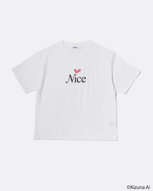 「Kizuna AI」のアイコンであるハートと「NICE」のロゴを組み合わせた「NICE WEATHER」オリジナルの1着。