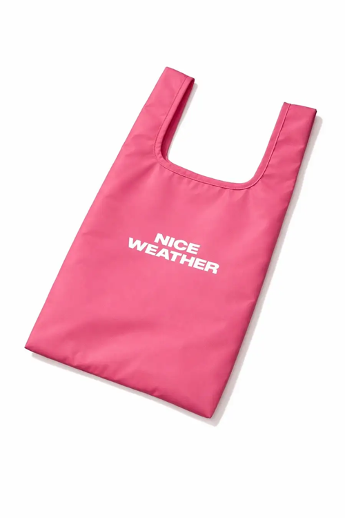 5,500円(税込)以上のお買い上げで「NICE WEATHER」のエコバッグをプレゼントします。カラーは「Kizuna AI」を想起させるピンクです。