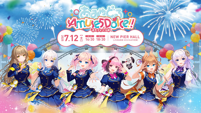 女性VTuber6名によるアイドルユニット「あみゅどる」は、2nd LIVE『あみゅどる Amuse 5 Dolce !! ~全力アイドル編~』を7月12日(土)にニューピアホールにて開催することを発表。