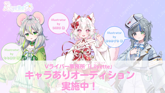 株式会社アナログは、VTuber事務所「ハコネクト」の姉妹事務所「Lilyette」において、IRIAMでより手軽にデビューできる「キャラありオーディション」を開催中。この度、本オーディションにおいて、新たに3名のキャラクターが追加されました。